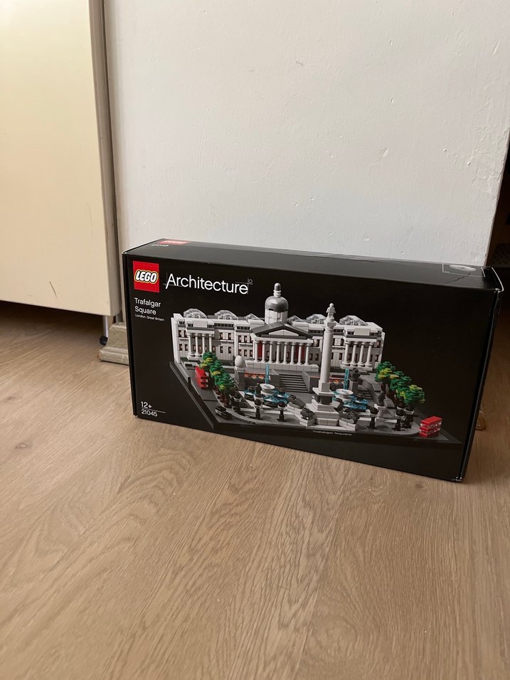 LEGO Architecture seti, siyah ve koyu tonlarda Trafalgar Meydanı'nın detaylı bir modelini sunar, ikonik binalar ve yapılar yer alır. ️Açılmamış sıfır kapalı kutusunda.Orjinal ürün Türkiye mağza fiyatı 20.000₺ civarında