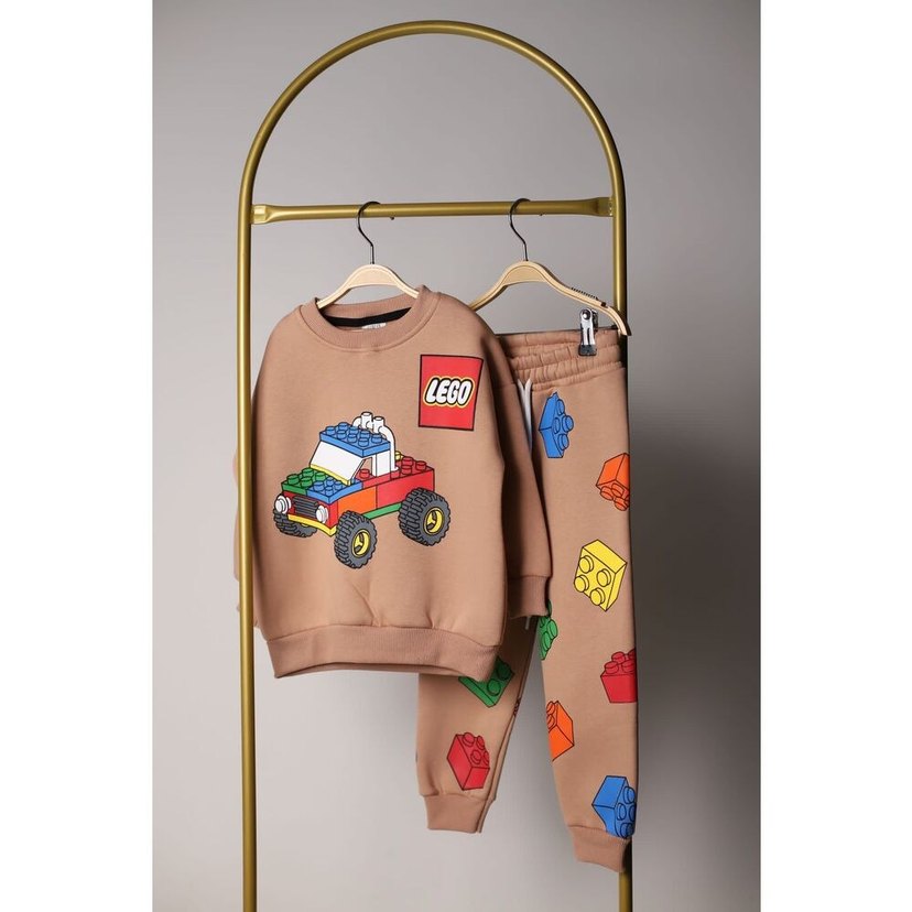 LEGO baskılı, bol kesim ve örme kumaşlı kahverengi erkek çocuk eşofman takımı. Canlı renkli blok desenleri ve bisiklet yaka detaylıdır. 9=10 yas icin