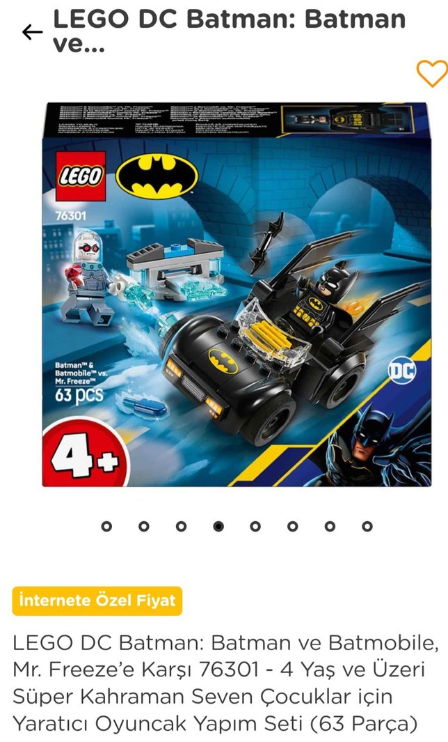 yeni sıfır üründür sağlam kutusundadır. LEGO DC Batman seti, Batman, Batmobile ve Mr. Freeze figürleriyle 63 parçadan oluşur,