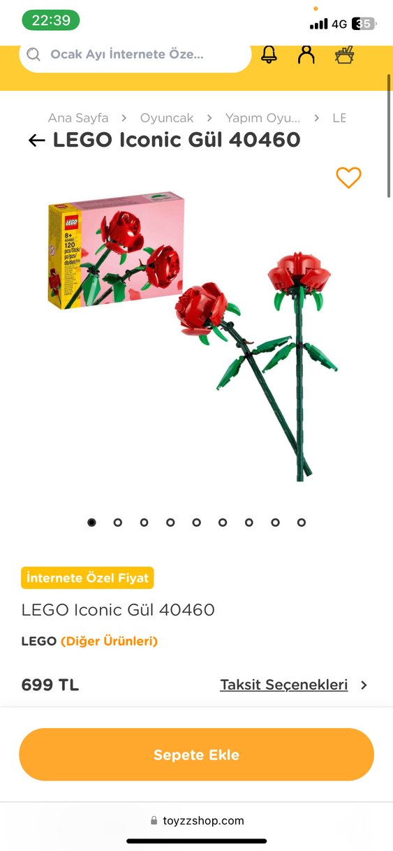 Bu LEGO seti, yeşil saplar ve yapraklarla birlikte ikonik kırmızı güller içerir, dekoratif bir çiçek düzenlemesi için uygundur.