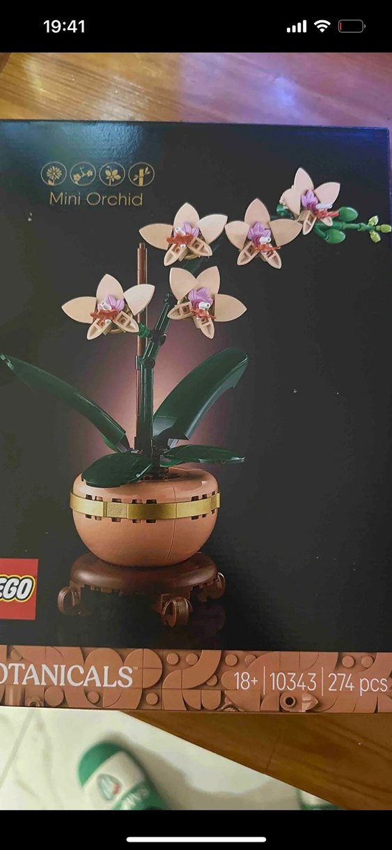 LEGO Mini Orkide, altın rengi saksıda detaylı yaprak ve çiçeklere sahip. 274 parçadan oluşur.