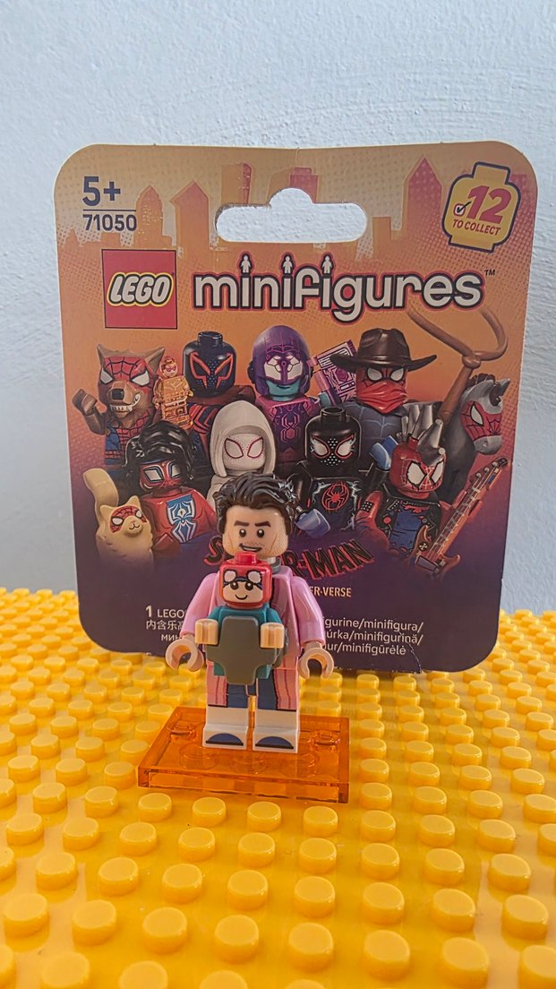 5 yaş ve üzeri için LEGO 71050 setinden Spider-Verse serisi minifigür. 12 figürlük koleksiyonun parçası, stand ile birlikte.