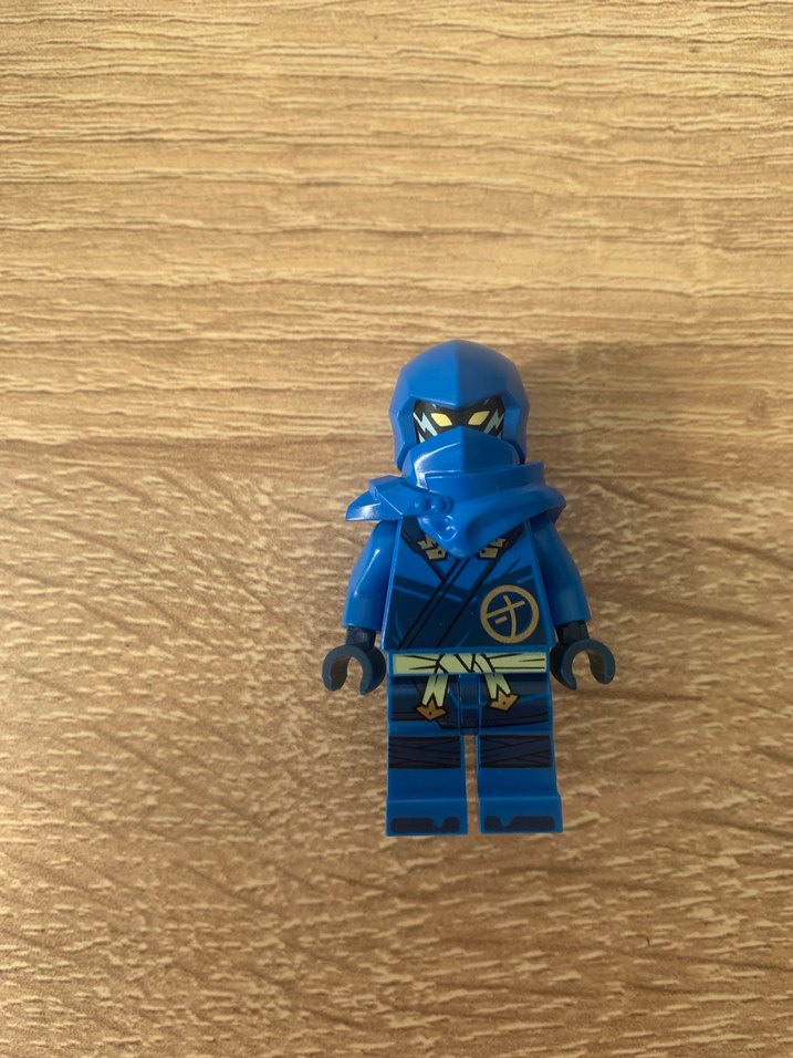 Detaylı baskılı, atkılı koyu mavi Lego ninja figürü.