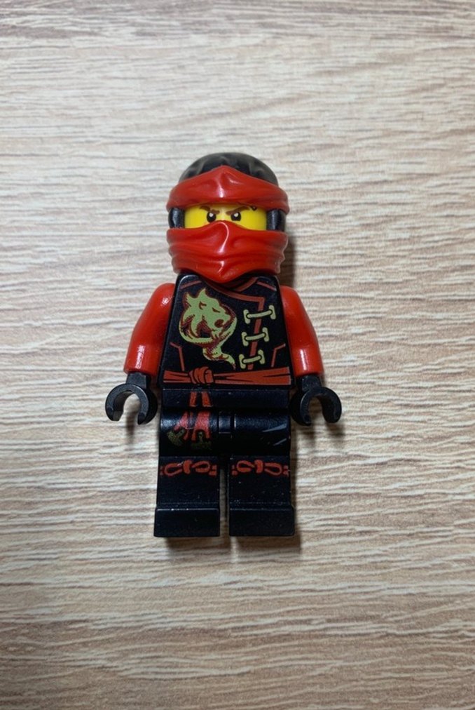Kırmızı renkli Ninjago Lego figür, detaylı baskılı tasarım ve maskeli yüz ile koleksiyoncular için uygundur.