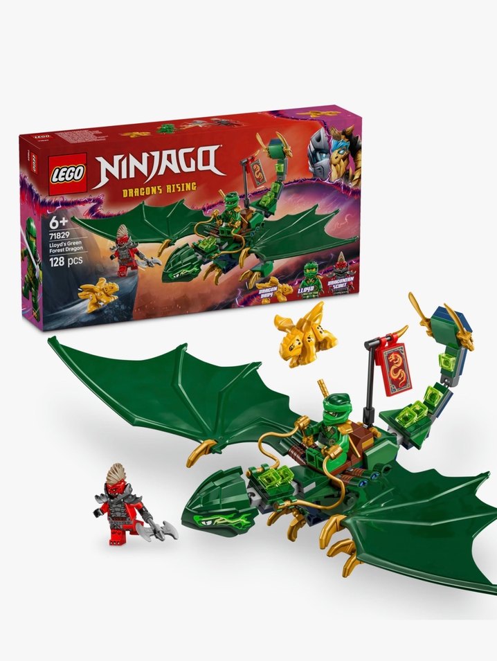 Bu Lego Ninjago Dragons Rising seti, küçük bir ejderha bebeği ve iki minifigür ile koyu yeşil bir ejderha içerir. Kanatları ve aksesuarları detaylıdır. Sıfır 128 parça