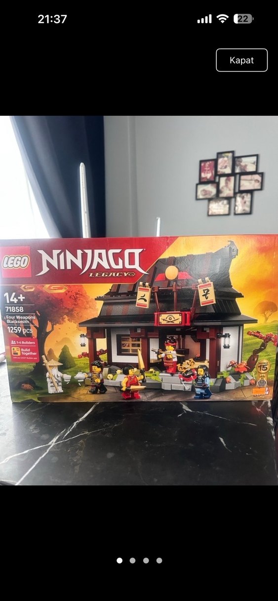LEGO Ninjago Legacy 71858 seti, 14+ yaş için 1259 parça içerir; detaylı bina, minifigürler ve silahlar bulunur.