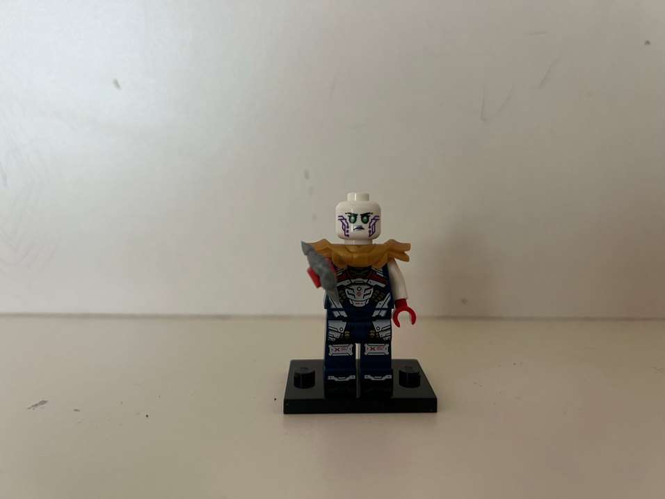 Bu gri Lego figürü, kılıç tutar. Detaylı yüz işaretleri ve zırh benzeri giysilere sahiptir. •Tabanlık dahil değildir.