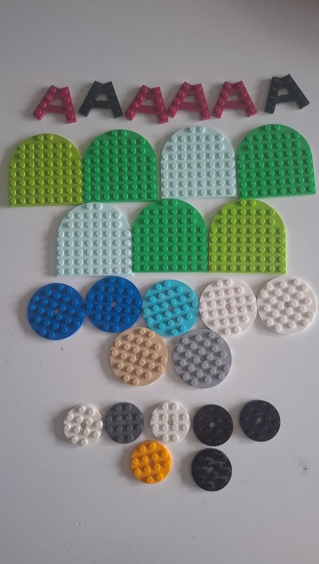 Çeşitli renklerde A harfi ve farklı yuvarlak ile yarım daire Lego parçalarından oluşan set. iade kabul edilmez.#lego #starwars #dc #ninjago #oyuncak #oyun