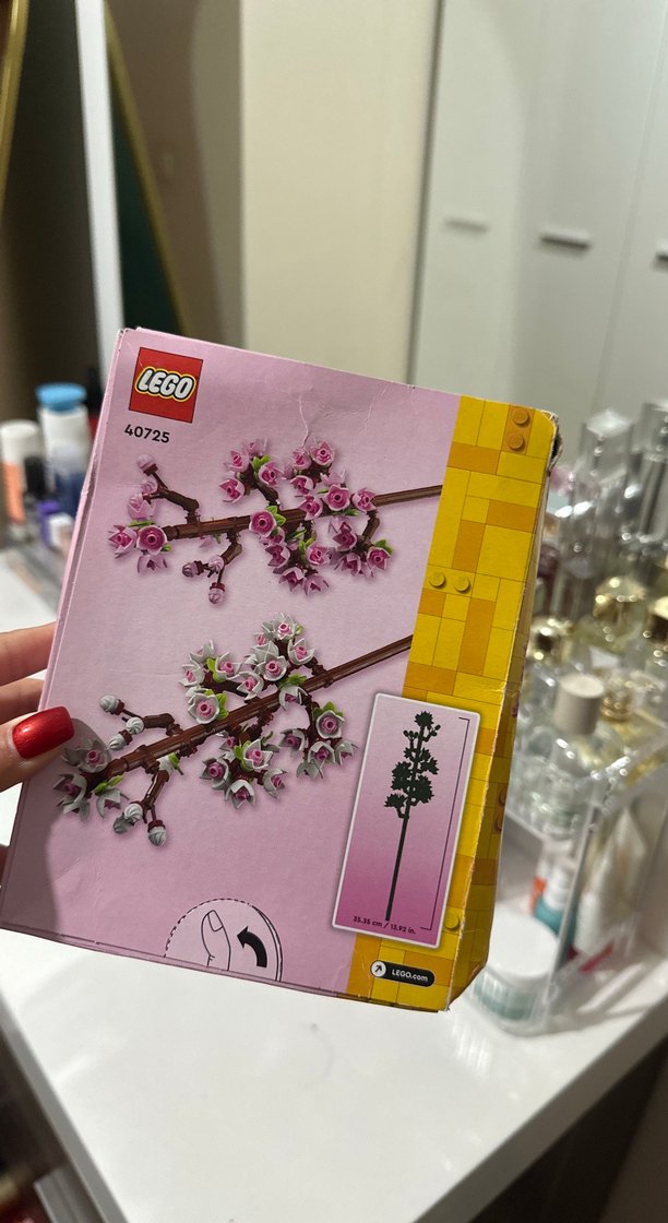LEGO 40725 seti, pastel pembe çiçek dallarından oluşan bir yapı ve dekorasyon setidir. Paket açıktır fakat yapılmamış durumdadır