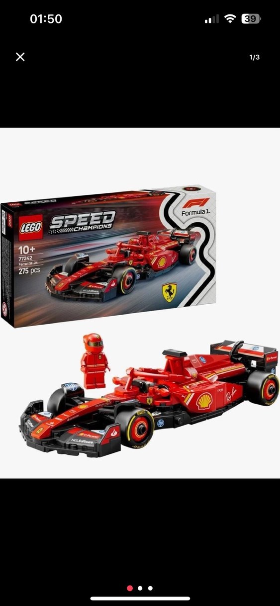 Lego ferrari sıfır kutulu üründür alıcısına hayırlı olsun. LEGO® Speed Champions Ferrari SF-24 F1® Yarış Arabası (77242), 10 yaş ve üzeri çocuklar için 2024 Formula 1 sezonunda yarışacak Ferrari SF-24 aracının detaylı minyatür modelini sunuyor. Set, açılabilir kokpit, arka kanat, Pirelli lastikleri, sponsor çıkartmaları ve bir sürücü minifigürü içeriyor. LEGO Builder uygulaması veya basılı talimatlarla kolayca inşa edilebilir. Bu set, Formula 1® tutkunları için mükemmel bir hediye seçeneği sunuyor. 1 minifigür – Bu araç seti, çocukların kokpite yerleştirip heyecan verici yarış aksiyonunu canlandırabileceği kanatlı bir kask ve özel bir Ferrari kıyafeti giyen bir sürücü minifigürü içerir. Orijinal Ferrari detayları – Arka kanat, hale çubuğu, sponsor çıkartmaları ve "Pirelli" baskılı daha geniş arka lastikler dahil olmak üzere gerçek hayattaki 2024 versiyonundan tasarım detaylarına sahip F1® yarış arabası. Tüm aile için F1® eğlencesi – LEGO® F1 serisindeki diğer yapım setleriyle