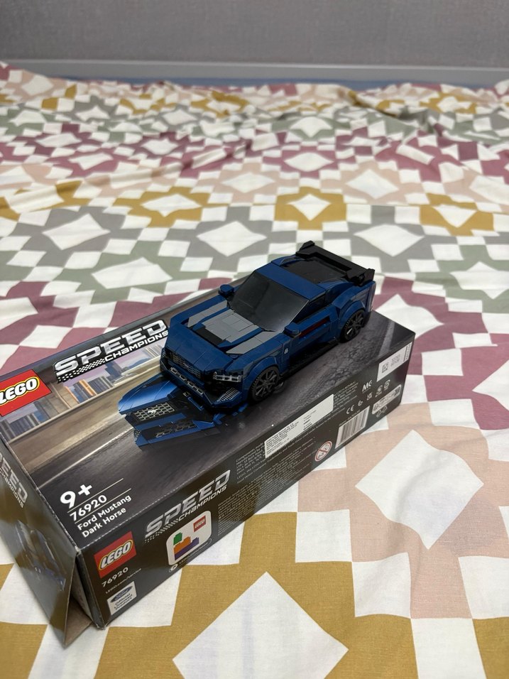 9 yaş ve üzeri için uygun, koyu mavi renkte LEGO Speed Champions spor araba modeli.