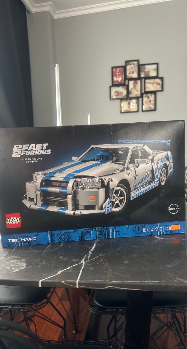 Bu LEGO Technic seti, mavi yarış çizgili gri Nissan Skyline GT-R model arabayı içerir. Detaylı tasarım ve hareketli parçalara sahiptir.