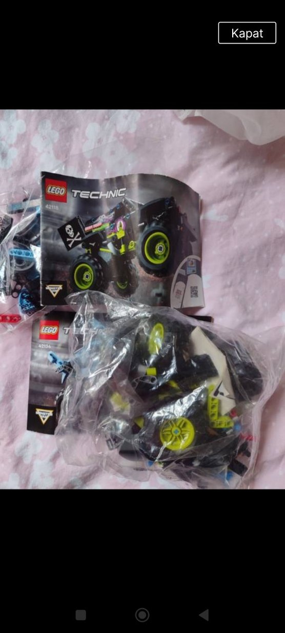 LEGO Technic set, siyah yarış aracı ve neon yeşil tekerleklerle, orijinal torbalarında ve kullanım kılavuzuyla birlikte. ️