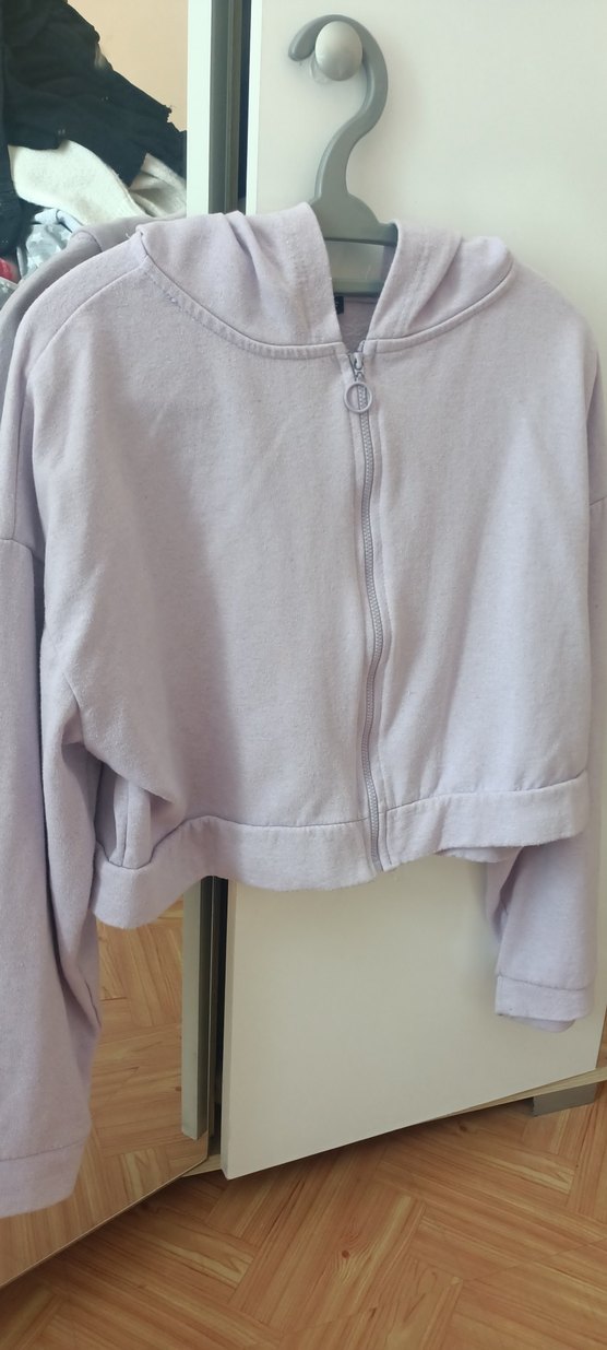 Kadınlar için uzun kollu, yuvarlak yaka ve fermuarlı ön kısmı olan bol kesim, normal uzunlukta gri tonlarında yumuşak ve sıcak kumaştan sweatshirt.