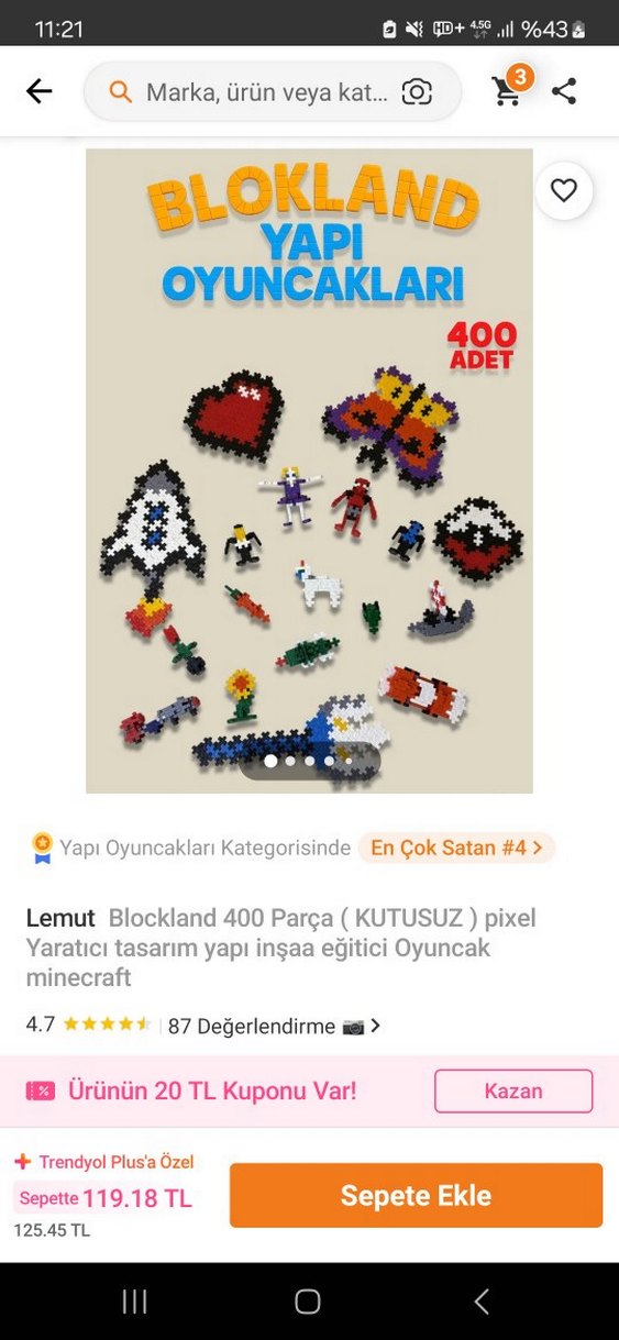 Lemut Blockland 400 Parça Minecraft Yapı Oyuncağı