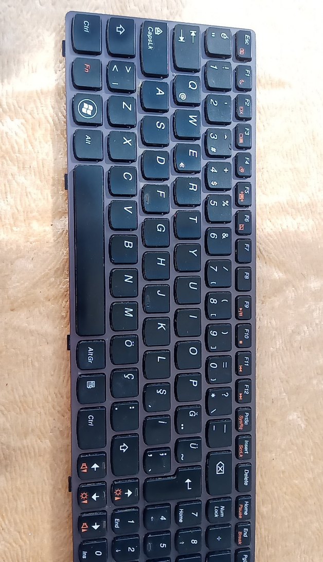 Lenovo laptop klavye.fonksiyon ve kontrol tuşlarıyla donatılmış, koyu renkli ve net etiketli tuşlara sahiptir. Şık ve alan tasarruflu bir tasarıma sahiptir. ⌨️