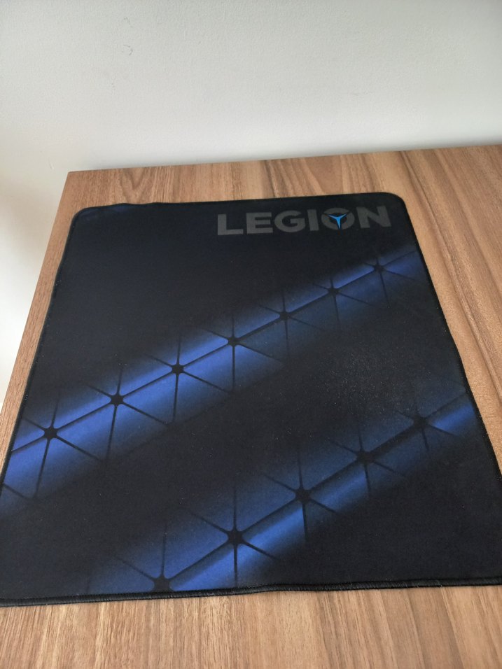 Koyu mavi ve siyah renklerde, hassas fare kontrolü sağlayan Legion mouse pad. Üzerinde Legion logosu bulunur. ️