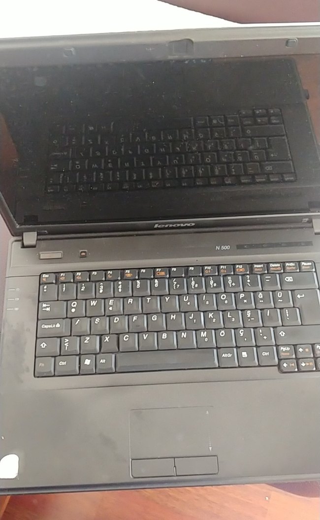 Lenovo N500 dizüstü bilgisayar, tam klavye ve dokunmatik yüzey ile siyah renktedir.