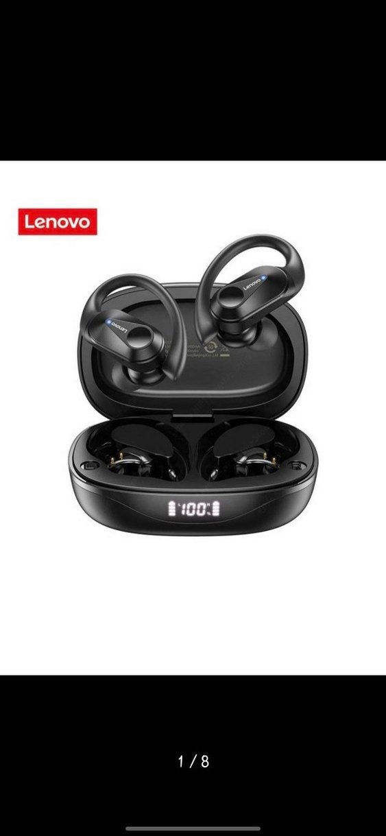 Lenovo marka siyah kablosuz kulaklıklar, pil yüzdesi gösteren şarj kutusuyla birlikte, sağlam oturuş ve net ses sunar. sadece 1 kere kullandım kulağıma büyük geldiği için satıyorum yedek başlıkları ve şarj aletini daha açmadım. Orijinaldir 946 liraya aldım.