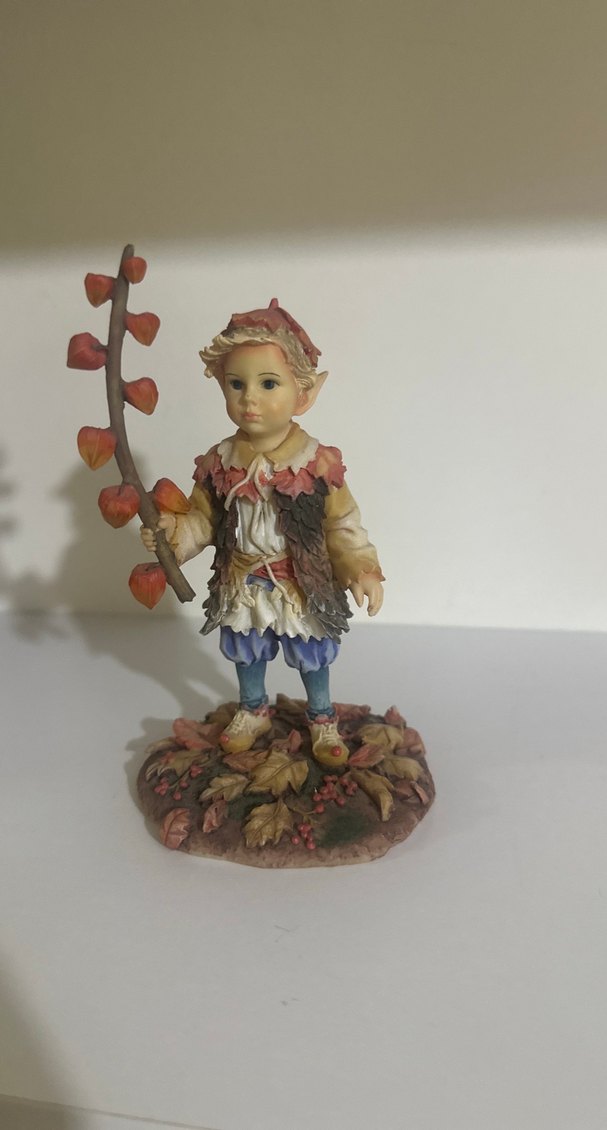 Bej renkli bu figür, turuncu yapraklı bir dal tutan çocuğu gösterir. Altında sonbahar yapraklarıyla süslü bir taban vardır. Ark çocuğun arkasında kanadı mı kelebeği mi kopmuş iç önemli değil onun dışında herhangi bir kusuru yok normalde bunlarda 1500 satılan ürünler