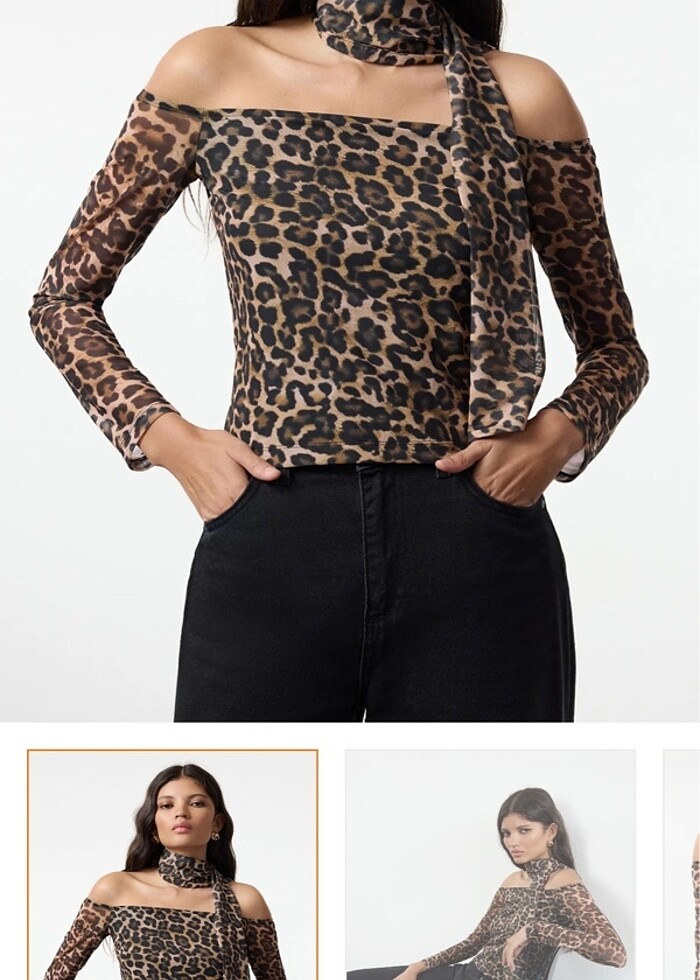 Leopar Bluz Fularlı