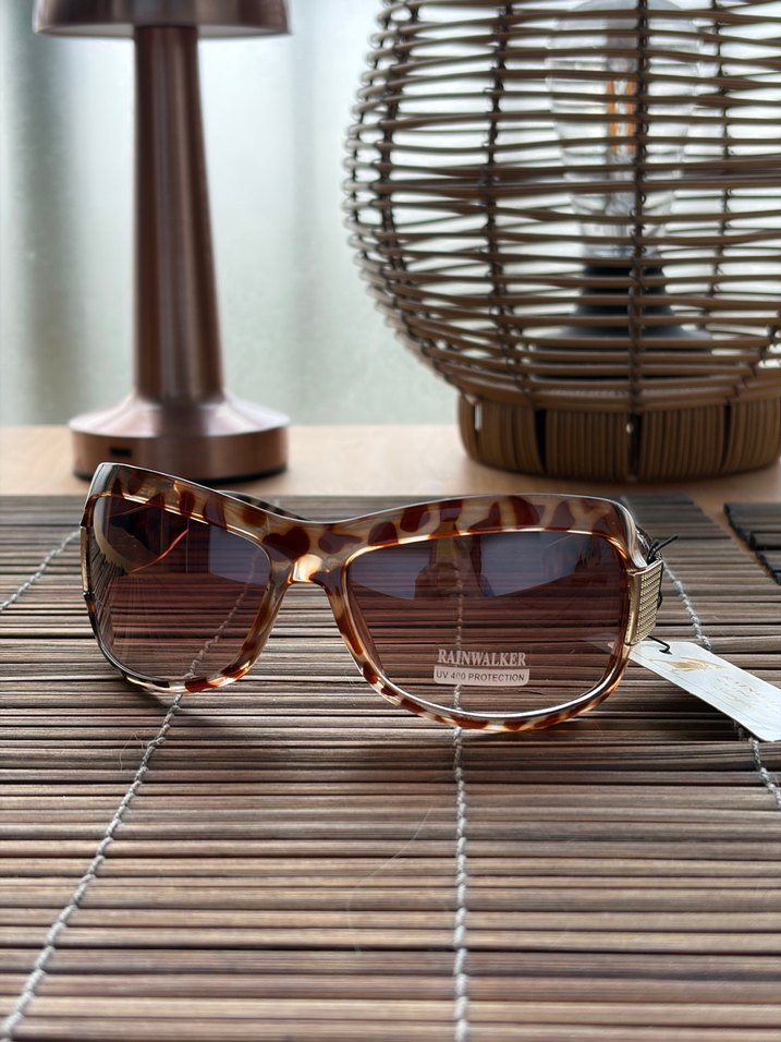 Parlak leopar desenli, tokalı yanları olan retro tarzda klasik kadın güneş gözlüğü. UV 400 koruması bulunur. Bohem, hippie görünüm için ideal. ️ Kapanan mağazamızdan kalan sıfır etiketli üründür. Sorunsuzdur.