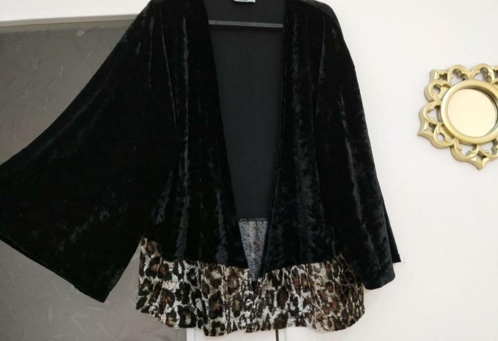 Siyah midi boy, bol kesim,kimono. Kadife dokuludur ürün yıkandı fakat giyilmedi