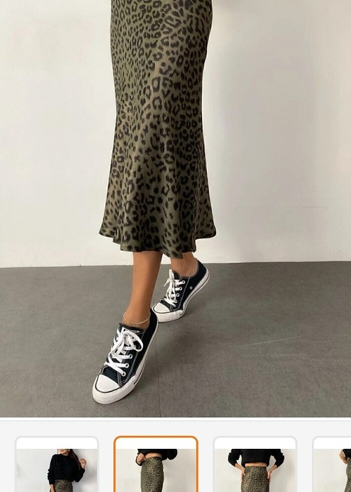 Leopar desenli saten midi boy haki etek birkaç kez giydim