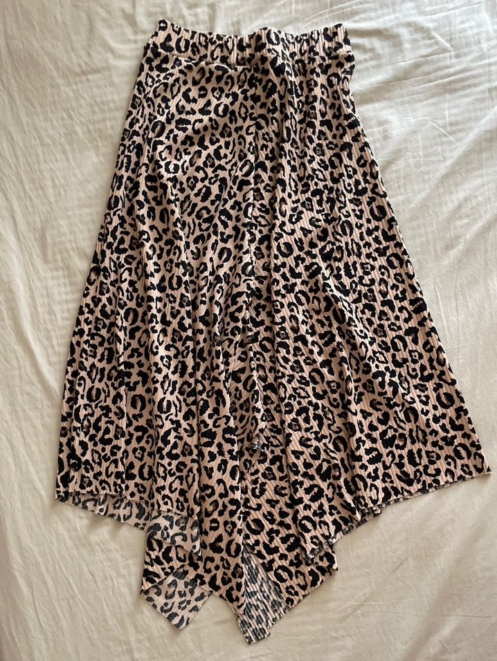 Leopar Desenli Asimetrik Vintage Midi Etek