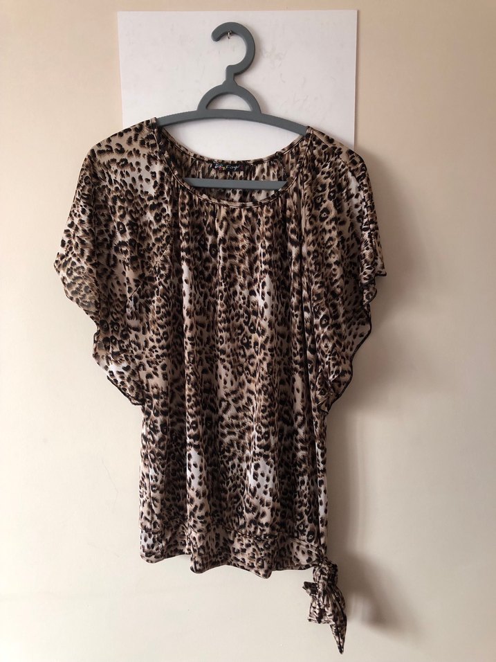Az kullanılmış, temiz ve iyi durumdadır. Leopar desenli, kısa kollu ve rahat kesim bluzdur. Yan kısmındaki bağlama detayı sayesinde şık ve modern bir görünüm sunar. Hafif ve dökümlü kumaşıyla günlük kullanıma uygundur. Jean, etek ve şortlarla kolayca kombinlenebilir.