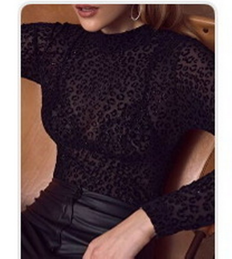 leopar desenli uzun kollu, vücuda oturan siyah badysuit