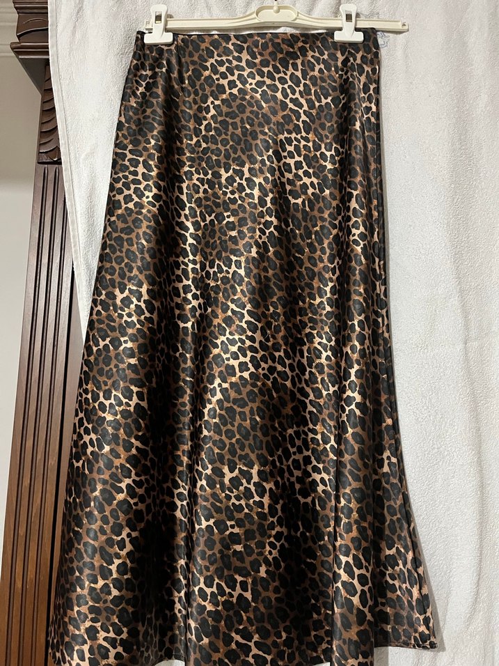 Leopar desenli kahverengi uzun etek, bol kesimiyle bohem