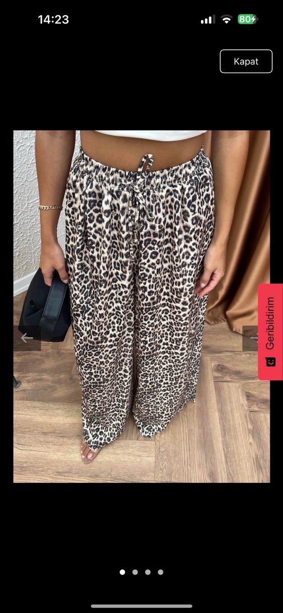 Leopar Desenli Bol Kesim Kadın Kumaş Pantolon