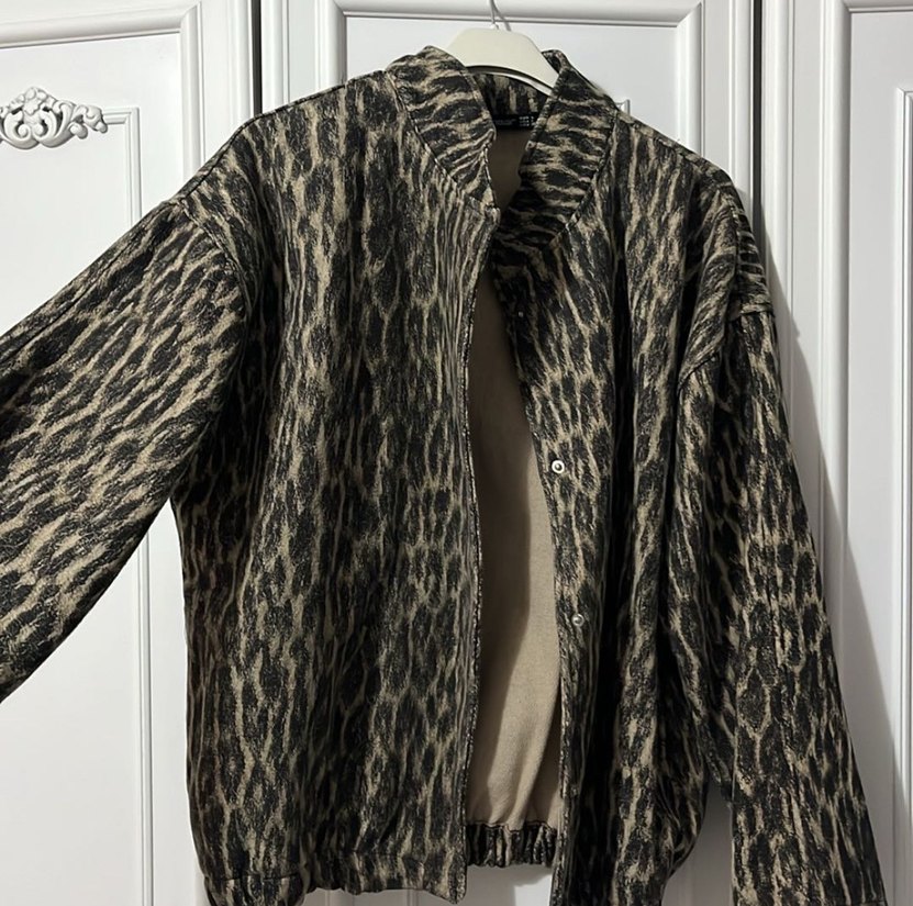 Leopar desenli, bomble detaylı, uzun kollu ve normal midi boyda bol kesim.Sokak modasına uygun, kahverengi ve gri tonlarında rahat bir model.