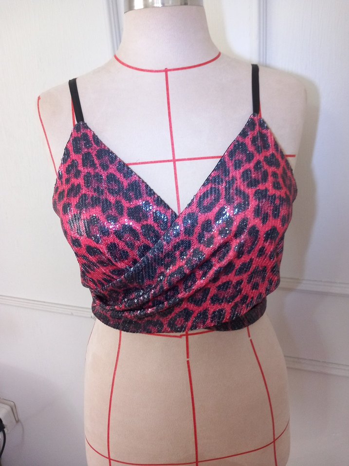 Pullu leopar desenli, drapeli ve askılı, straplez yaka detaylı, dar kesim büstiyer, parti için uygundur. esnek kumas oldugu için 42_44 beden rahatlıkla giyebilir.Içi glopludur.