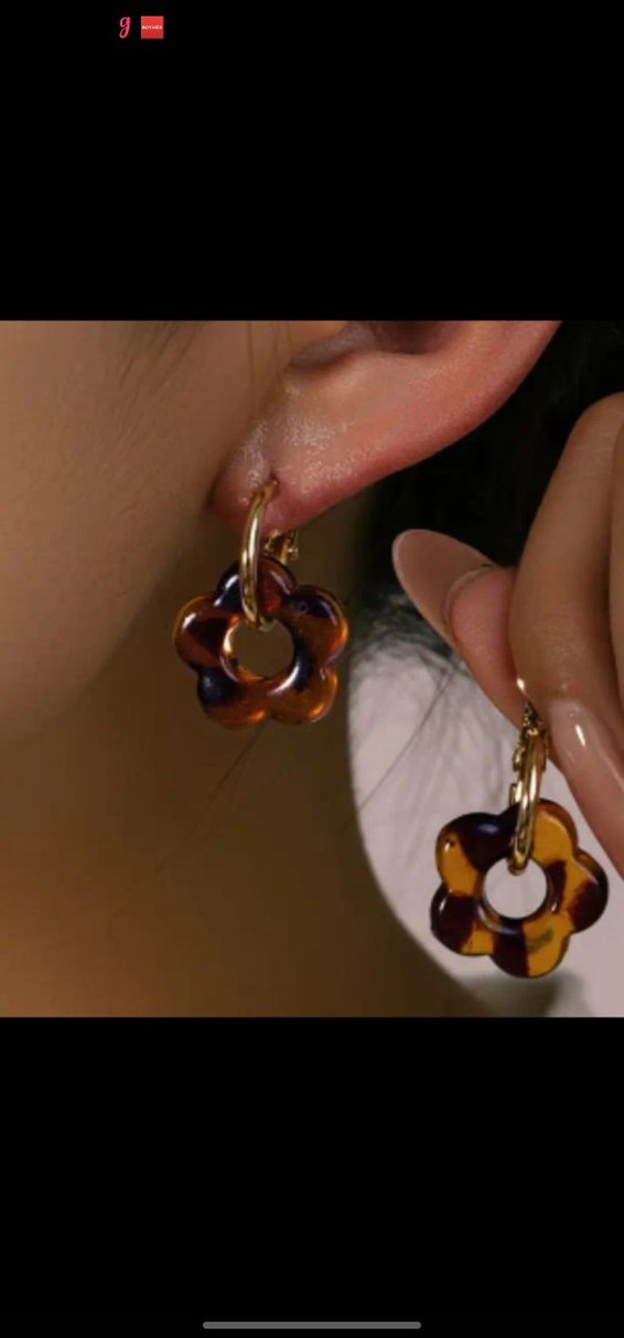 Kahverengi leopar desenli kısa çiçek şeklinde küpeler. Bohem tarzına uygun, günlük kullanıma hafif ve şık.