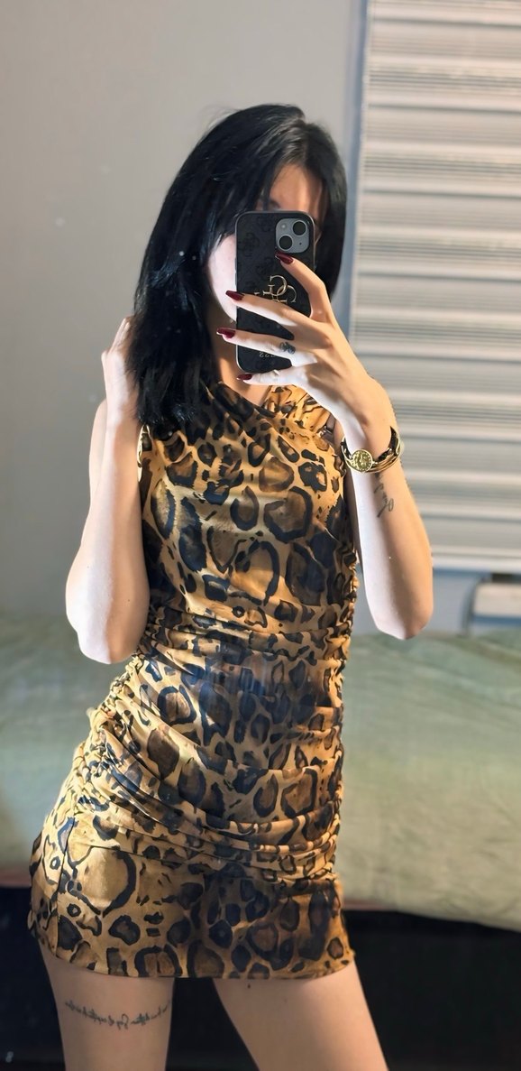 Leopar Desenli Drapeli Mini Elbise