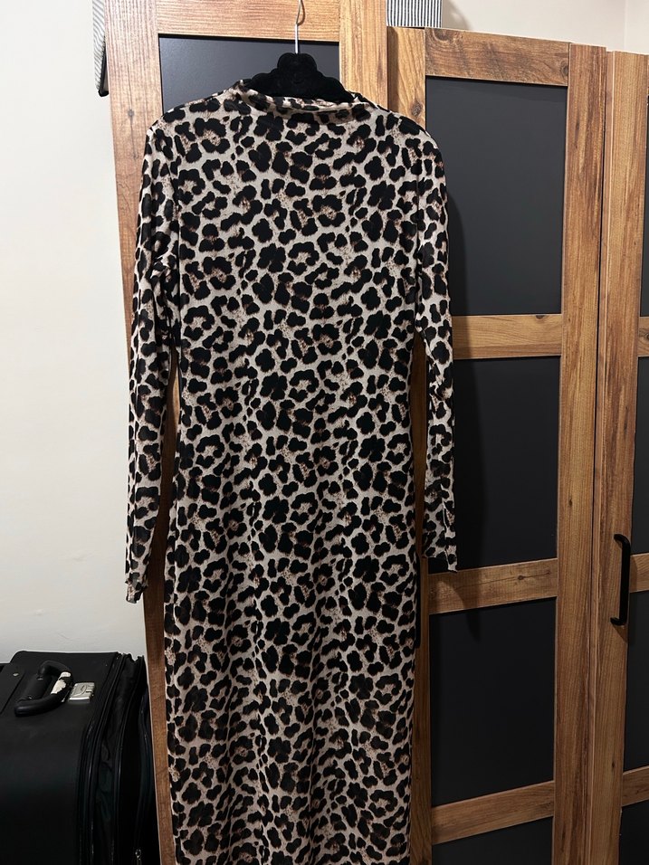 Leopar desenli uzun elbise ince bir kumaşı var , kol kısımlarında astarı yok göğüs ve diz üstüne kadar astarı mevcut . Günlük de tercih edilebilir