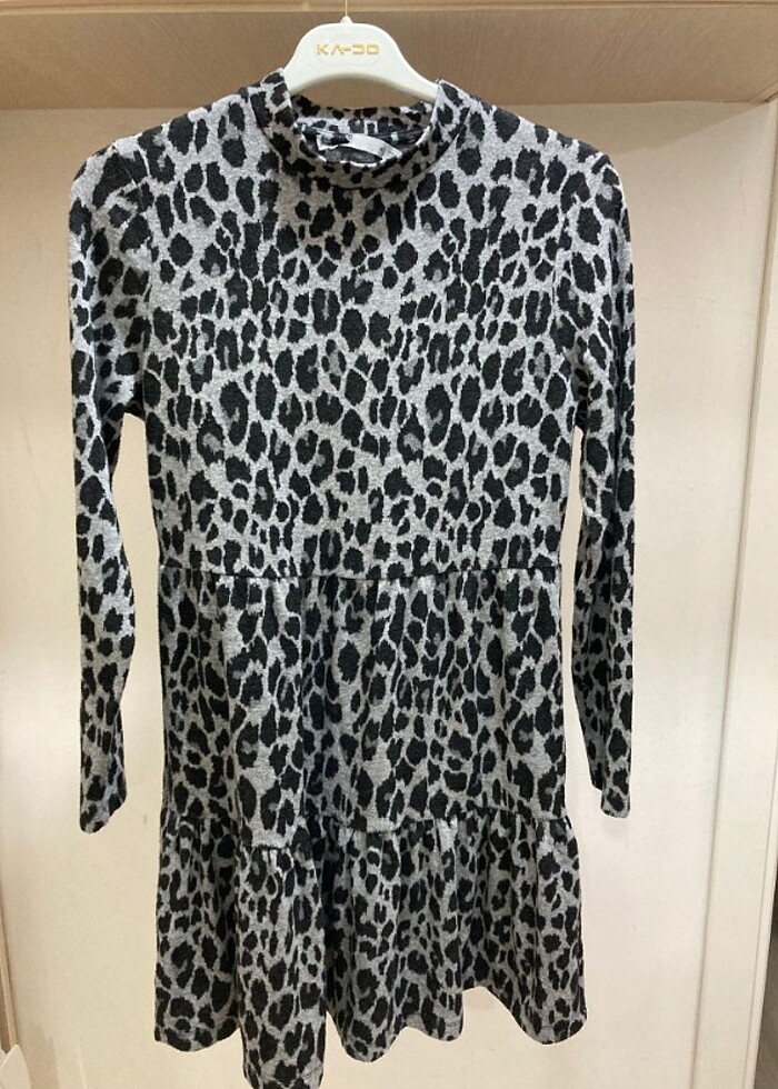 Oasis marka siyah beyaz leopar desenli şık bir elbisedir. Kumaşı tüylenmiş değil yünlü kumaştır