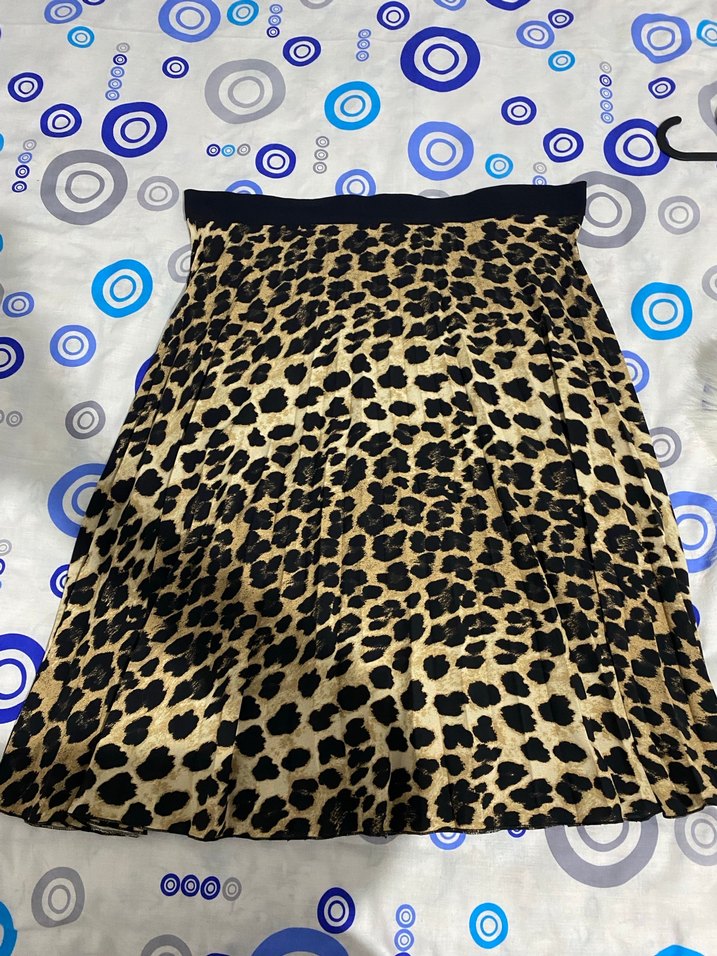 Bu pilili uzun hamile eteği, koyu kahverengi leopar desenine sahip bol kesimdir. Sentetik kumaştan yapılmış, günlük kullanıma uygun rahat ve bohem bir tarzdadır.