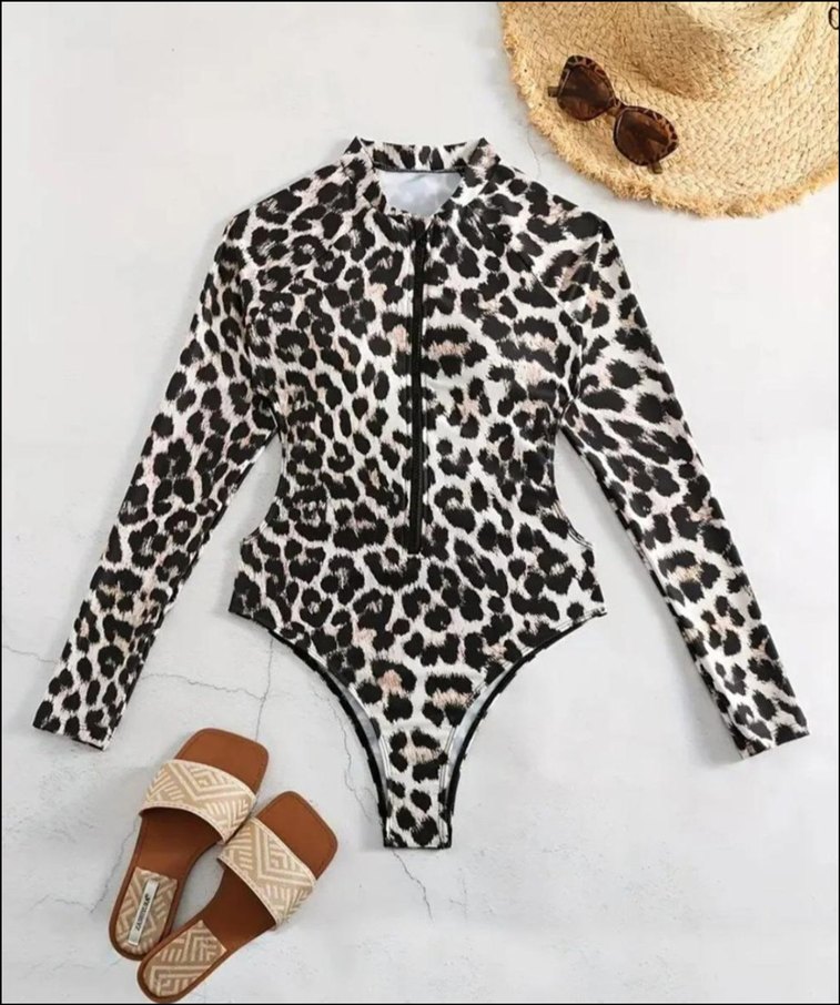 Dik yakalı, uzun kollu, fermuarlı ve leopar desenli dar kesim kısa , sentetik kumaştan üretilmiştir. Trendy ve athleisure tarzlar için uygundur. SÖRF VE TESETTÜR MAYO OLARAK GEÇER. HİJYEN BANTI TAKILIDIR. ETİKETLİ ÜRÜNDÜR.