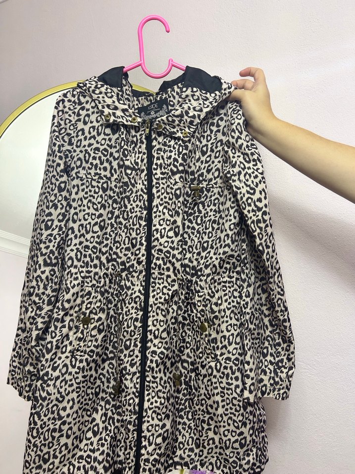 Leopar Desenli fermuarlı yağmurluk