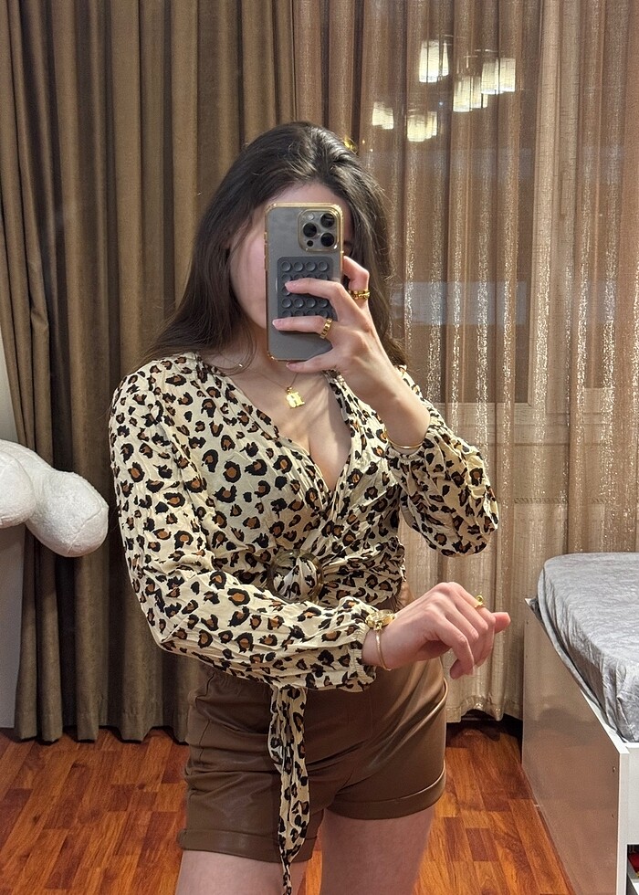Leopar Desenli Gömlek Kemer Detaylı