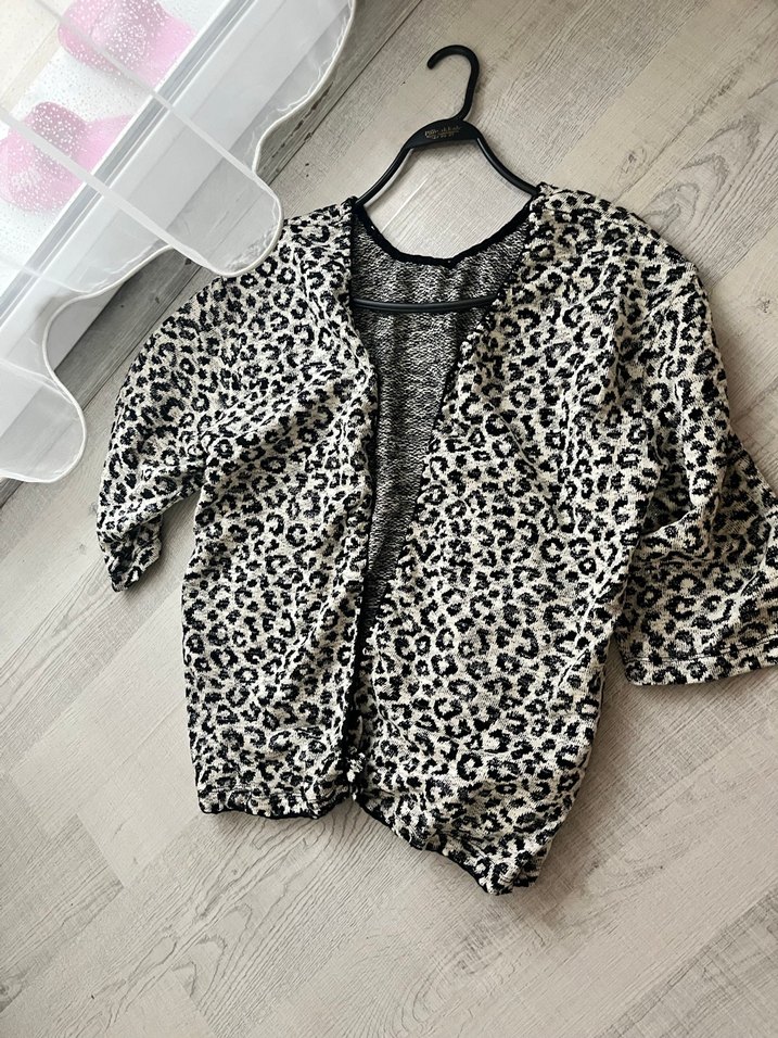 Leopar Desenli Gri Düğmeli Hırka