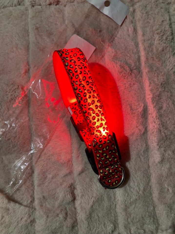 Leopar desenli, ayarlanabilir ölçüsü ile küçük orta ve büyük ırk köpeğe uygun ışıklı sıfır kullanılmamış boyun tasması