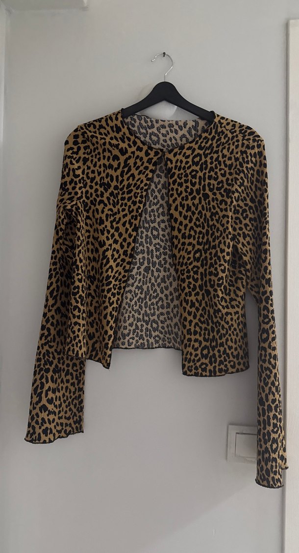 Leopar desenli, uzun kollu, leopar detaylı, sentetik kumaştan yapılmış, normal boyda, dar kesim kadın midi Bluz Sokak stiline uygun. Çok güzel bir parça hırka olarakta kullanılabilir hiç giyilmedi tertemiz