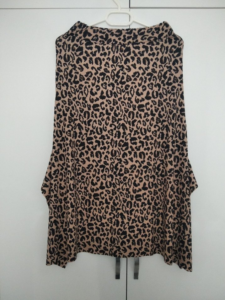 Kahverengi leopar desenli midi etek, bol kesim ve drapeli tasarıma sahip, yumuşak sentetik kumaştan üretilmiştir.