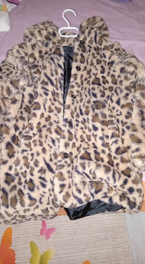 Leopar desenli, uzun kollu, midi boy suni kürk ceket. Herhangi bir kusuru yoktur.