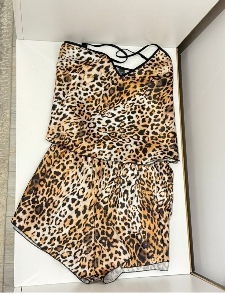 Leopar Desenli Kadın Mini Şortlu Pijama Takımı