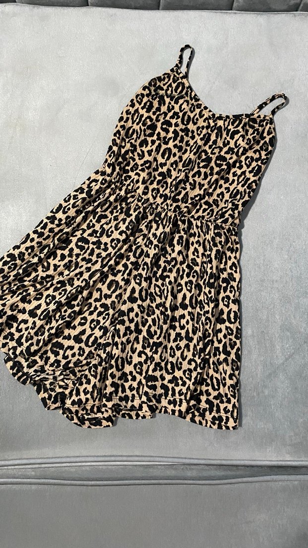 Leopar desenli kadın mini tulum, ince askılı ve V yakalıdır. Sentetik kumaştan, bol kesim ve kürk detaylı, rahat ve şık bir sokak stili sunar. Kahverengi tonlarında, günlük kullanım için uygundur.